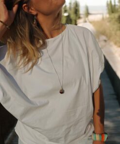 Eichelkette mit echter Eichelkappe und Edelstein. Der Anhänger dieser Kette wurde mit einem Silberstift verbunden und somit sicher verarbeitet.